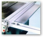 guide rail. Parallelism to the sawblade is conveniently adjusted by screw. |